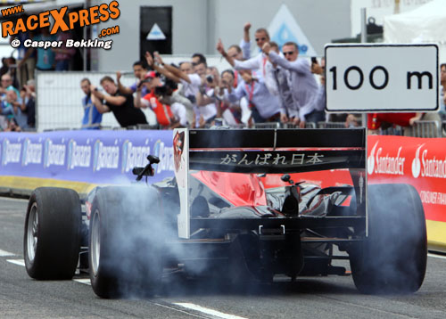 ROTTERDAM - Robert Doornbos heeft in zijn thuisstad voor een daverende show gezorgd tijdens de zevende editie van Bavaria City Racing. De oud F1-coureur gaf een spetterende demonstratie weg in de 750 pk sterke Superleague-bolide. Tussen de rookwolken door maakte RaceXpress onderstaande foto's/